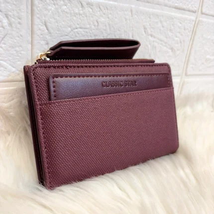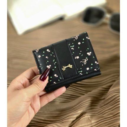 Embroided Wallet With Coin Storage – Black (W057)